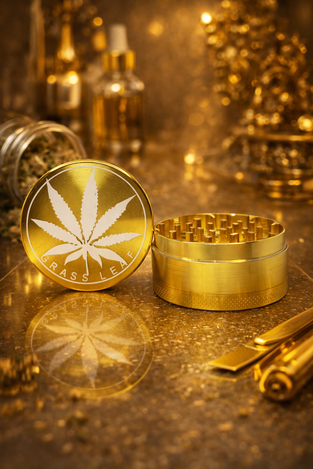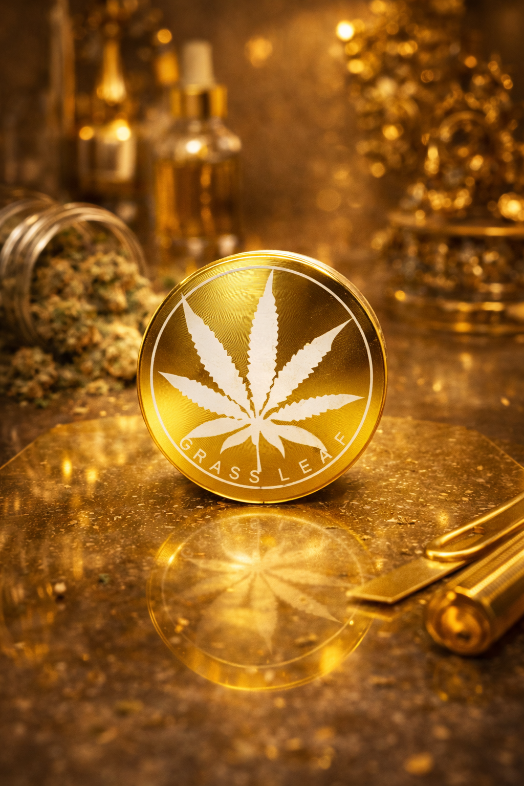 Son design doré brillant, orné d’une feuille emblématique gravée, lui donne un style premium qui attire immédiatement le regard. C’est le grinder parfait pour ceux qui recherchent un accessoire aussi beau que performant.